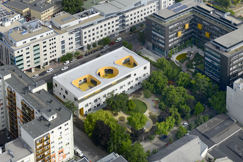 A Darmstadt Passivhaus Institut által minősített 16 csoportos óvodaépület REHAU GENEO PHZ ablakprofilokból készült nyílászárókkal. Magyarországon az első ilyen volumenű, minősített passzív közösségi épület.